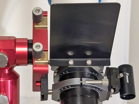 6センチコロナド鏡筒は、アリガタ金具の末端にネジ穴を設け、板金業者に加工依頼したアルミ板(黒色アルマイト)を取り付けました。
