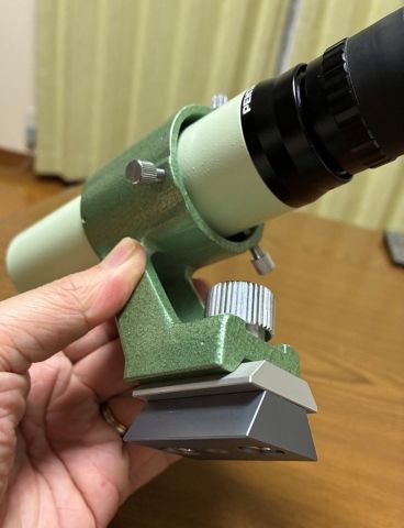 PENTAX製ファインダー7X35を、一般的なビクセンファインダー規格のアリミゾに取り付けたいというご要望に応えて製作しました。台座の下の部分はMORE BLUE製ファインダー脚座FG304になります。